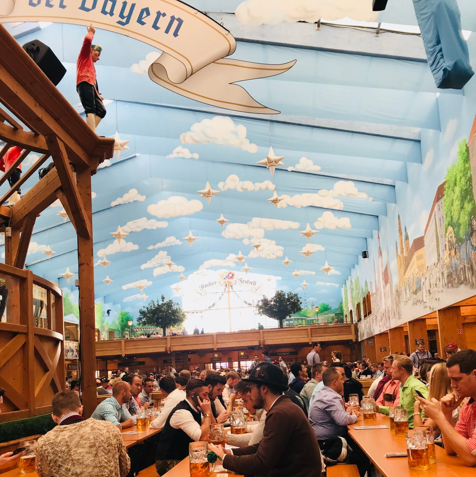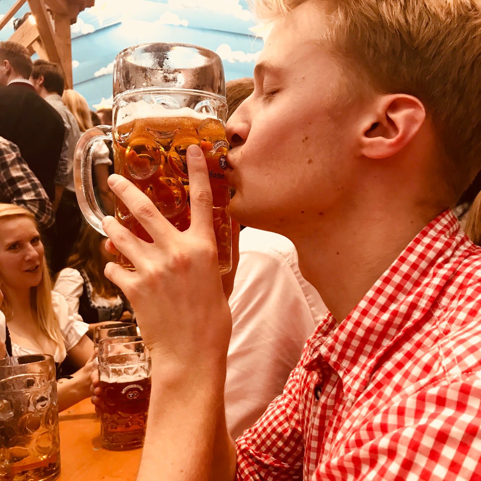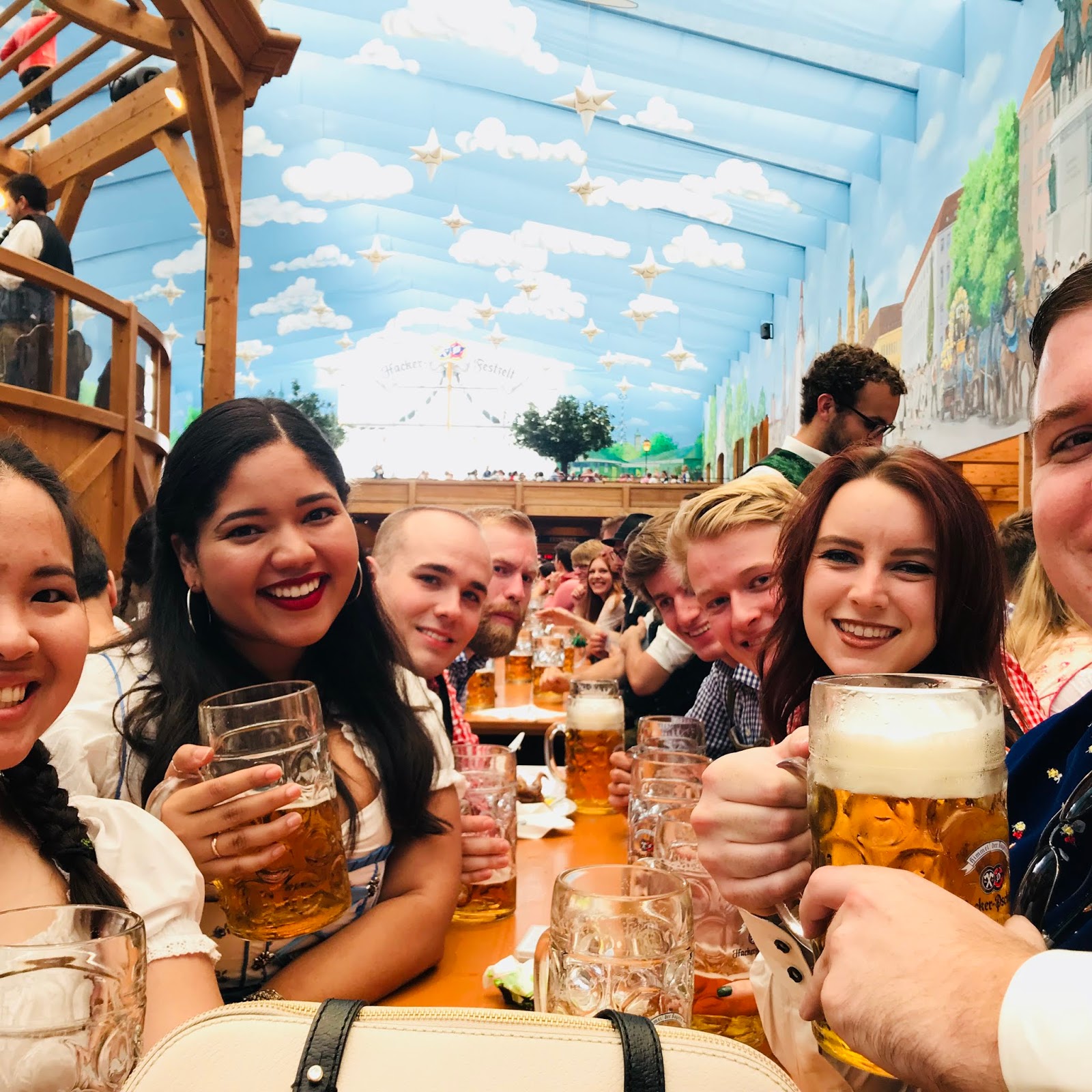 I didn’t know I bought a ticket to the gun show for Oktoberfest. I physically got a bruise on my hand from lifting my liter glass all day. When I sit down and think about my time in the tents, all I’m doing is talking, lift, cheers-ing, drinking, and slamming my glass down. You have to have a beer in your hand constantly; otherwise, they will kick you out, so that process is on repeat until you leave. It is impressive how the waiters can carry pyramids of those suckers all around the tents. Who knew 8 hours of drinking could be so defining?